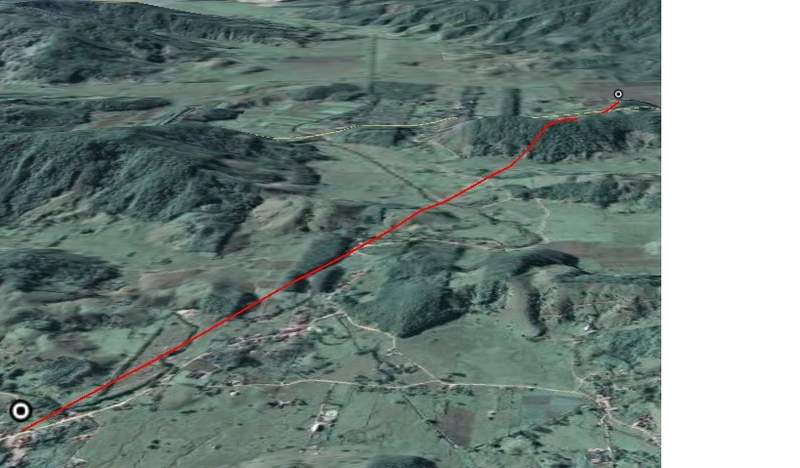 A distancia é 4kms, numa ponta tem 50 metros, na outra 20 metros, o morro que tem na frente como se ve na foto e de 120 metros, sera que passa, alguma ideia?