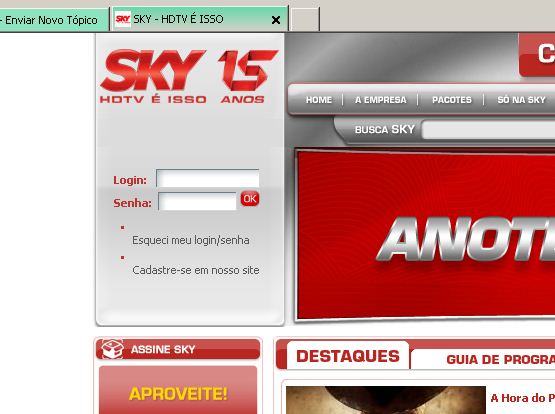 então estou realmente apanhando. Afinal sou usuário intermediário de mikrotik ainda. Mas notei que é alguma coisa relacionada com DHCP ou servidor DNS. Sim lembrando um detalhe quando acesso a pagina da Skytv que sou cliente da sky, não aparecem o campo de Loguin e senha de usuário para eu poder reservar um filme pra assistir. Esse aqui ó: então