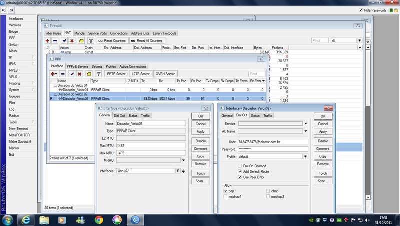 abaixo os prints de como ficou o ppp, nat e router