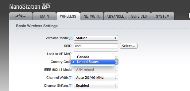 inclusive, sob exigencias da FCC (A ANATEL dos EUA), a ubnt foi forcada a fixar o "Country Code" para Canada ou EUA nos equipamentos comercializados na America do Norte.