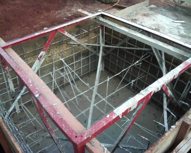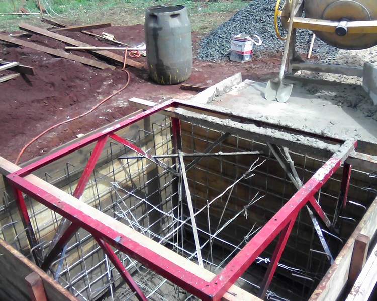 obs: para esta base foram gastos 82 sacos de cimento, 12 mts de areia grossa e 10 mts de brita nº2 etc...