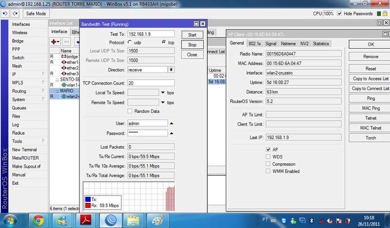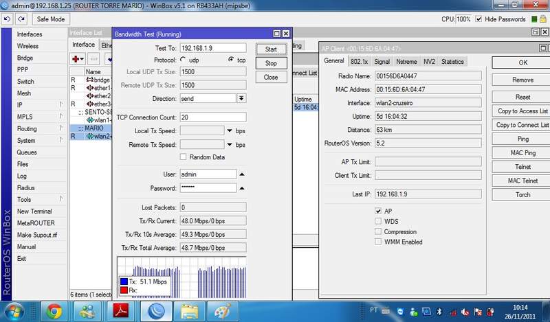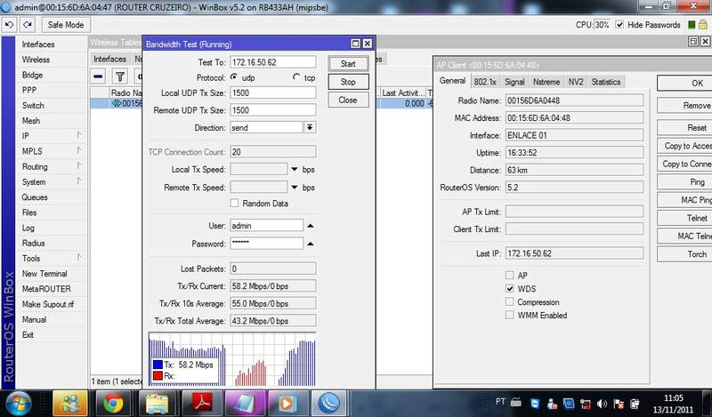 fechei 50 km com mesmo equipamento que vc,,-40 de sinal...em udp 200 mb e em tcp 100 mb em tcp com opção buth ativada ,,apenas 60 mb