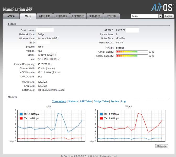 Como será que está acontecendo essa fuga de link? Problema no mikrotik? Veja as prints abaixo, do mikrotik e da antena principal (nano m5).