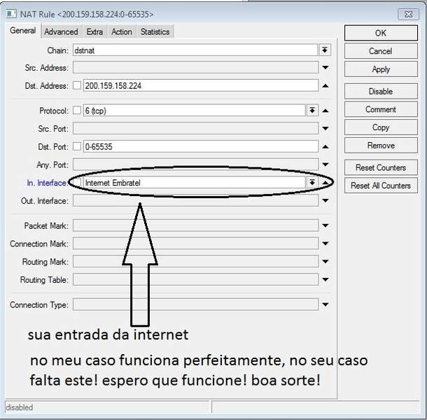/ip firewall nat add chain=dstnat dst-address=200.159.158.224 protocol=tcp dst-port=0-65535 action=dst-nat to-addresses=192.168.0.16 \