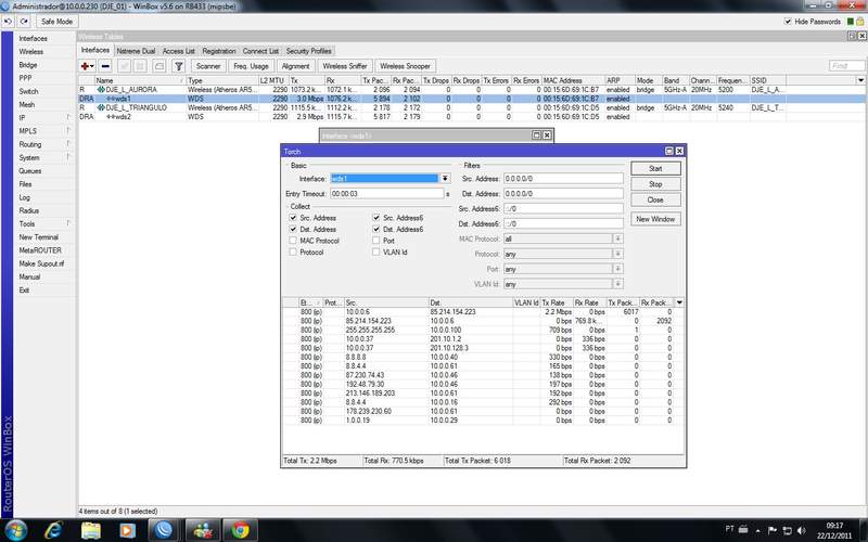 estou precisando da ajuda de vcs, a situação é a seguinte tenho uma rede de mais ou menos 70 clientes, onde tudo funciona normalmente, quando sem o motivo ( ou pelo menos não achei ele), começa um trafego de 3..4 mb onde tinha olhando poucos minutos antes e não tinha nem 1mb e qnd isso acontece para de navegar toda a rede e isso acontece com todos os ptp q tenho, recebi umas dicas pra usar o torch, segue na imagem a baixo um print da tela
