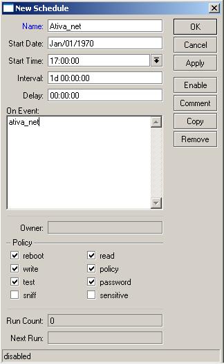 Segue abaixo agendamento de como ativar a net utilizando o script criado, com o mesmo exemplo você cria para desativar a net