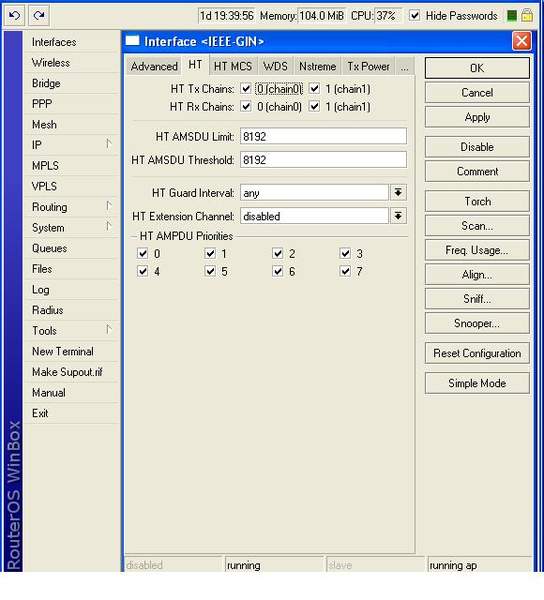 Se estiver disable deixa como está. O problema que estava tendo aqui era justamente por estar habilitado o wireless nv2. Tenta habilitar para verificar se o enlace fecha os HT's. Então assim, o nv2 será habilitado e funcionará.