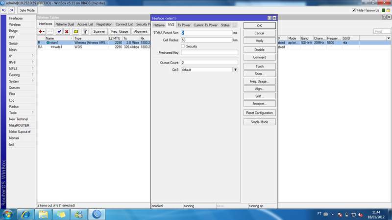 Obs: eu atualizei para poder usar o nv2 pois antes estava na versão 3.30 e quando colocava uma das pontas como station wds eu usava o nstreme pois tanto o nstreme quando o nv2 tem que ter uma das pontas como wds correto? Só foi colocar na versão 5.11 que ao colocar uma das pontas em station wds o enlace cai
