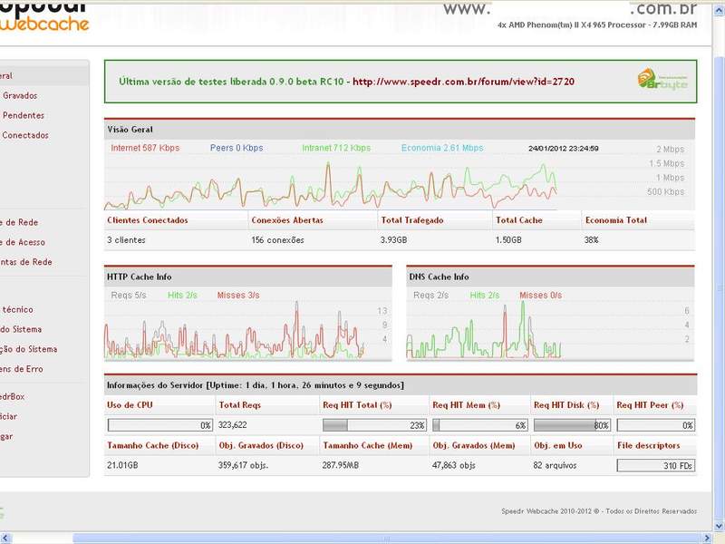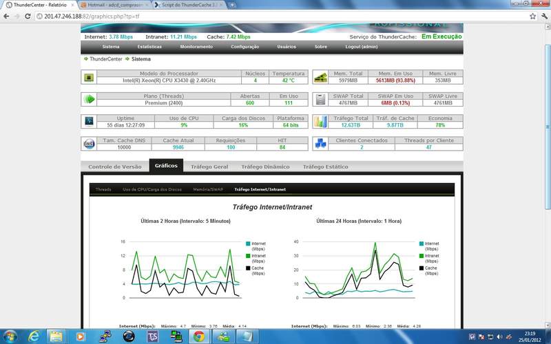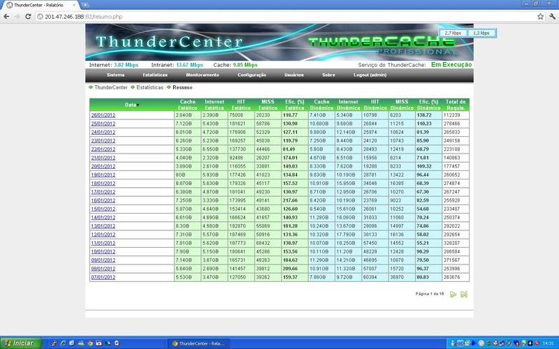 segue o resumo dos dias, percebe-se que na imagem anterior temos um dado de percentual de cache referente des do dia da implantação onde sabemos quanto mais tempo de cache maior é este percental que hoje ja esta em média 300% de cache com o thundercache, tire suas própria conclusões...