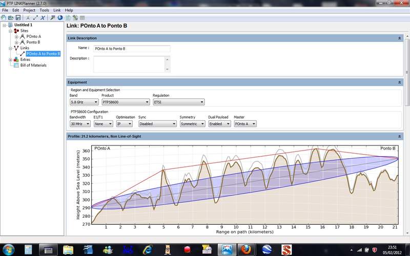 Amigo , seu Link com estas coordenadas postada , Foi Inviavel , totalmente sem visada, vj imagens . COloquei 20 metros em cada ponto de Altura de torre.Anexo 32958