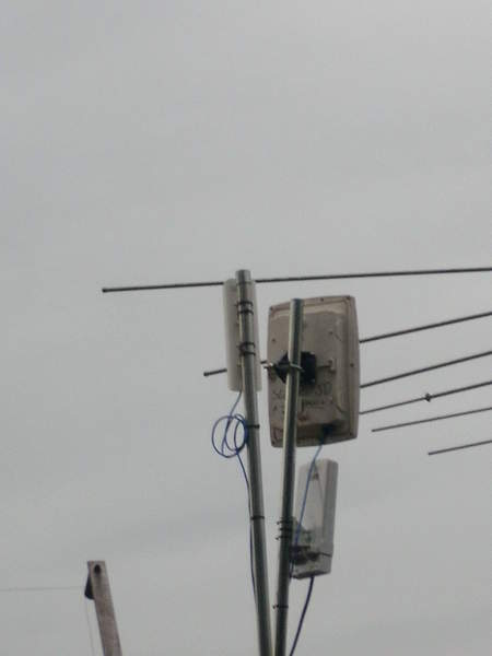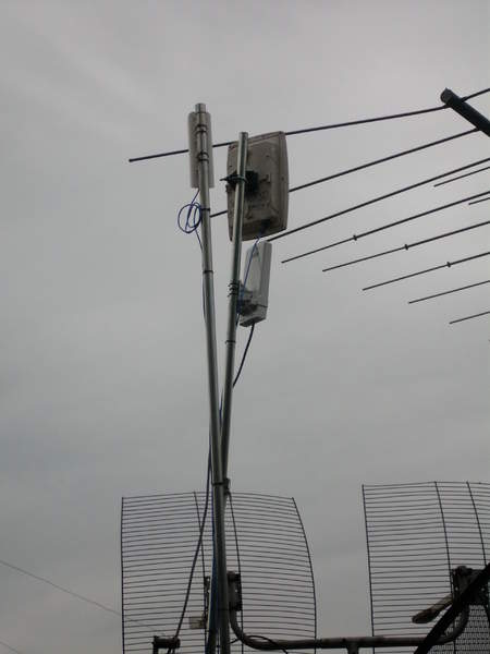 Note que têm dois radios 5.8 no mesmo mastro um colado no outro.