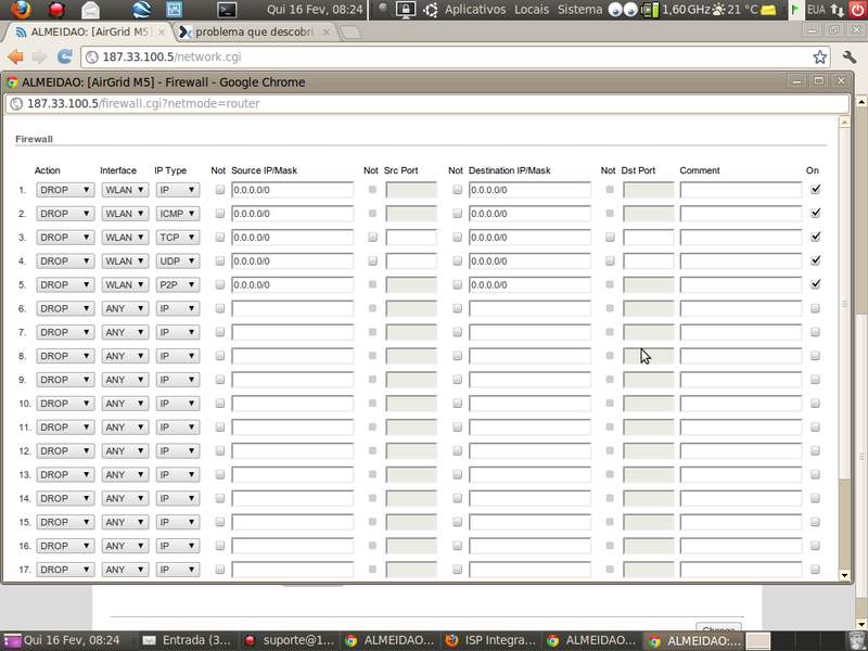 agora o mas interessante neste defeito e que aconteceu na mesma rocket ,mas com aparelhos diferentes a primeira vez com uma nanostation ,e a segunda vez com uma airgrid ou seja ja e de descartar problema com equipamento de clientes e sim que e um problema com este rocket .