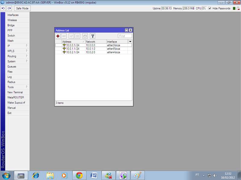 Oi Chekinho, tô sem a rb aqui no momento....é seguinte, eu configuro ela por ex:ether3>>>ip 10.0.0.1/24 ; ether4>>>10.0.1.1/24; ether ether5>>>10.0.2.1/24