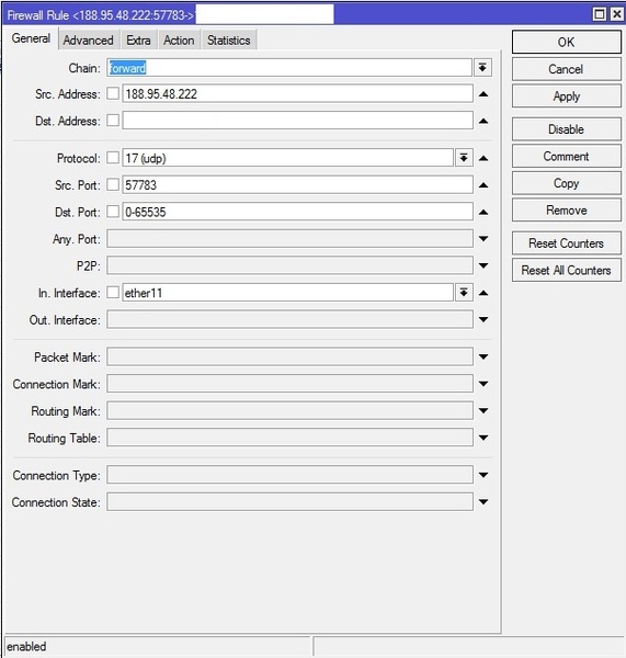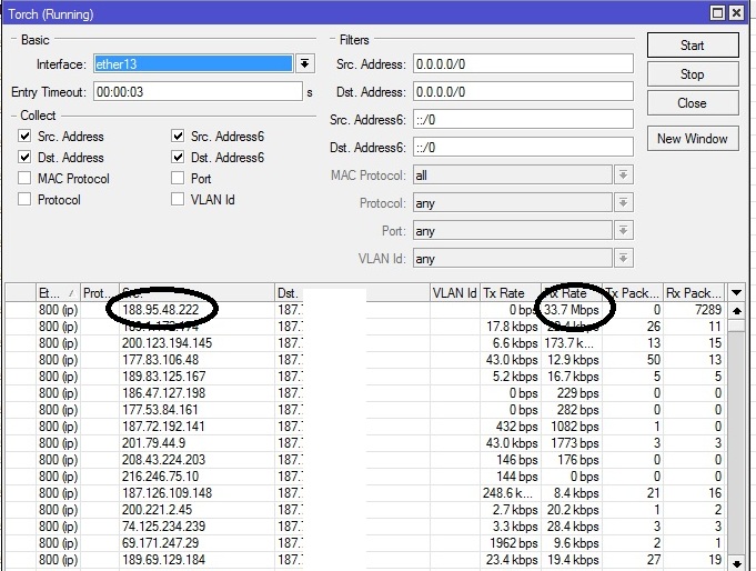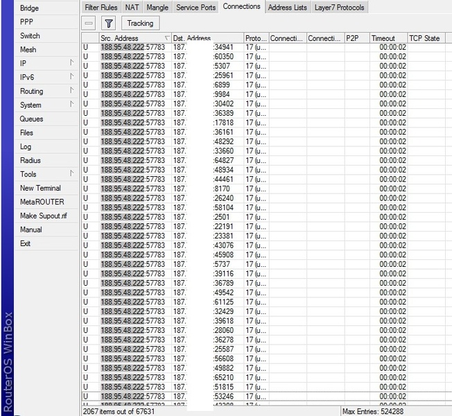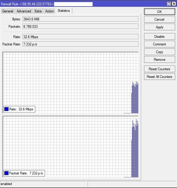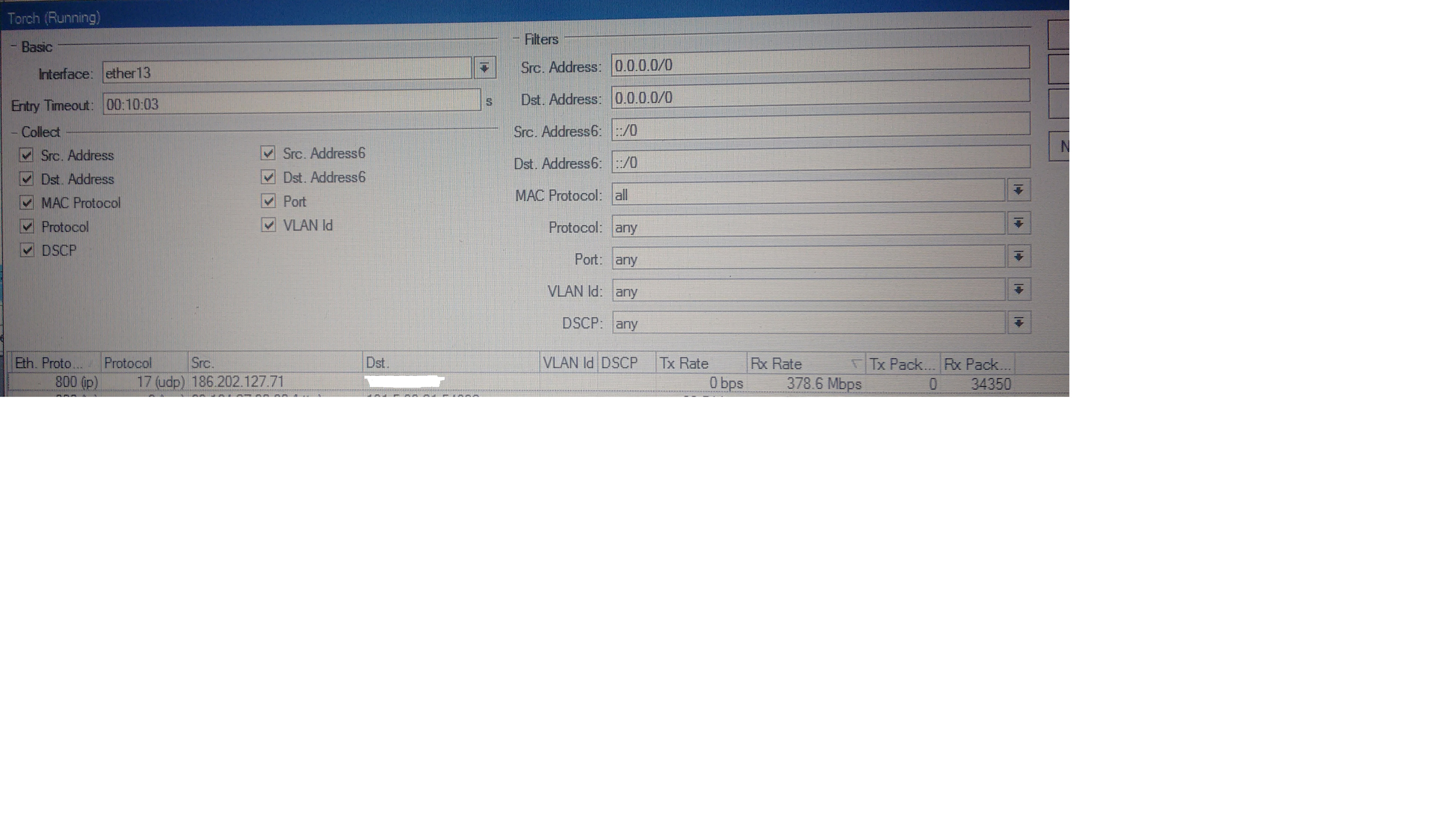 Boa Tarde amigos , tenho uma rb que uso ela como roteador para meu link de fibra otica de uns dias para ká o ip 64.90.52.150 começa a gerar um trafego por udp em varias portas alta e com isso consome todo meu link , ja tentei varias regras de drop mas em nenhuma consegui sucesso, estou anexando uma imagem de um tourch que dei na hora do ataque . se alguem tiver alguma ideia de como posso solucionar Obrigado..