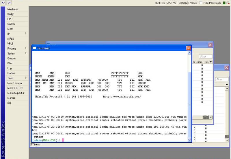 quando entro na RB e clico em New Terminal, aparece a seguinte mensagem: system,error,critical router rebooted without proper shutdown, probably power outage