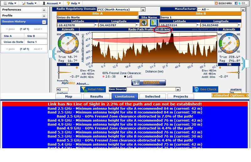 Quero vê quando chover e quantos megas tá passando neste enlace, porque com esse obstaculo que você postou acho impossível ter um link de qualidade.. Eu mesmo tive situação igual a sua e a solução foi contornar o morro com mias 2 saltos de rádio licenciado. Abcs.