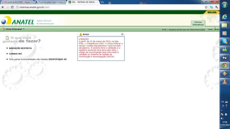 A partir de 12 de março de 2012, na tela STEL »» Freqüência (105) »» Incluir/Alterar o campo “Código Equipamento” será tornado obrigatório. O sistema fará a validação e o cadastro somente será aprovado caso o código de homologação seja informado e validado no Sistema de Gestão de Certificação e Homologação (SGCH).