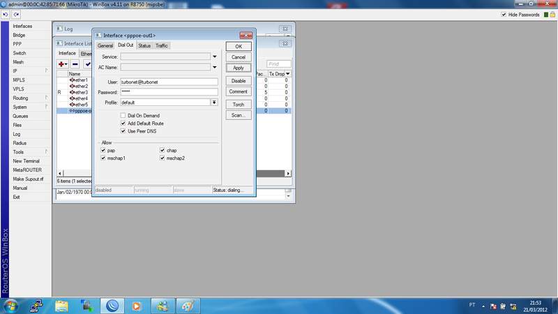 Bom dia Genis, eu quero fazer a RB discar através do modem em bridge. O problema é que no Windows disca tranquilo já na RB dá problema.