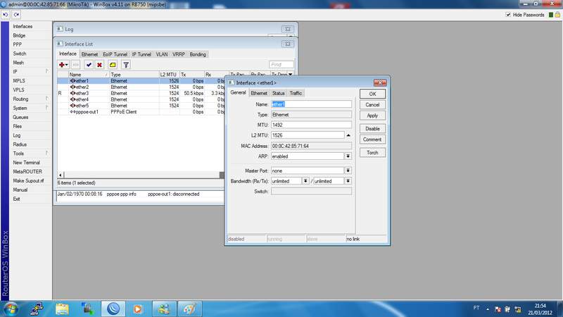 backsubzero já vi um cara aqui com um problema igual o seu pois ele usava conversos de mídia por ser um link muito grande e não conseguia passar internet nem discar na RB450 mas o problema dele era por que a RB450 não era portas Gigabit por esse motivo não reconhecia e não aceitava passar internet dai ele botou uma RB450G que são portas Gigabit e pronto funcionou perfeitamente mas engraçado é que sua é RB1200 e são portas Gigabit então não seria o seu caso então tenta usar o MTU maior na conexão PPPoE Cliente e ver se consegue discar.