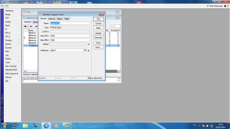 é que no post anterior voce colocou varios print´s, e la esta mostrando voce fazendo configurações de profiles e na aba ppp, para criar o discado para usar ADSL não precisa de profiles, apenas entrar em interface e clicar no sinal + localizar PPPoE Client, e colocar user+senha e pronto.