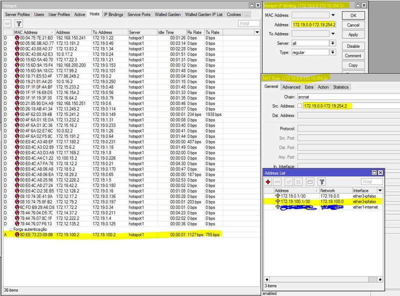 Configurei o hotspot e coloquei uma maquina separada na lan e funcionou perfeitamente colocando varias redes diferentes deixando o NAT 172.19.0.0-172.19.254.0, o problema dar-se quando coloco o servidor mikrotik junto no mesmo switch os meus clientes esta funcionando, no hotspot em Hosts veja que tem varios clientes meus entrando neste servidor.