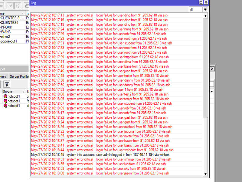 Olá galera do Under,,está acontecendo algumas coisas muito estranhas no Log do meu servidor, ja a alguns dias. será q é algo muito grave? Pois não tenho muita esperiencia com MK "ainda". Portanto queria a ajuda de vcx pessoal. desde já agradeço!