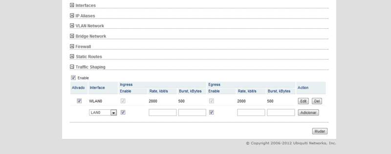 Para 2000 Kb de down e 500 Kb de up, na Interface WLAN, na parte Ingress coloque em Rate 2000 e na parte Egress, coloque em Rate 500.