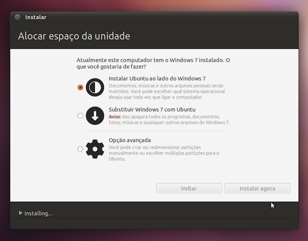 Dizendo melhor você deixou espaço em disco para o Ubuntu?