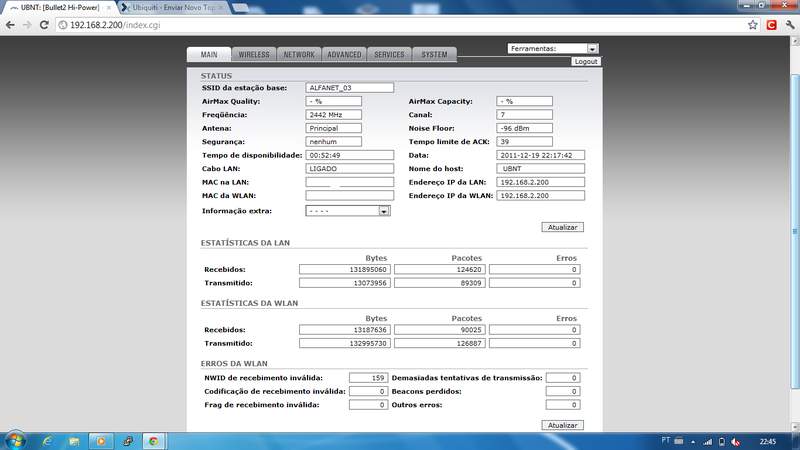 E aqui com omni 15dbi hyperlink, uso a apenas 16dbm, fui abaixando até o máximo possível.
