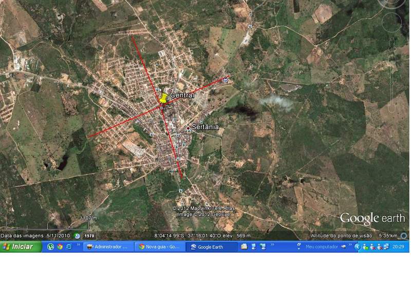 Amigos, na imagem acima, é a cidade onde irei implantar meu provedor. As linhas vermelhas mostram o território da cidade, 1 km desde o centro. Qual equipamento deveria usar? Existe apenas um provedor na cidade, causando pouca interferência, de inicío terei 40 clientes certos, mais não pretendo ficar apenas nisso. o ponto amarelo é onde será a sede do provedor, cidade plana, estou localizado a 568 metros acima do nível do solo, o lugar onde as antenas serão instaladas fica em torno de 16 metros de altura acima. Gostaria da ajuda de vocês. Grande abraço.