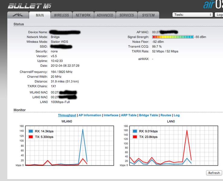 Agora, se você pensa em melhorar muito seu link, vai ter que trocar este radio pelo MK 5hpn que da 800mw e uma RB435G.