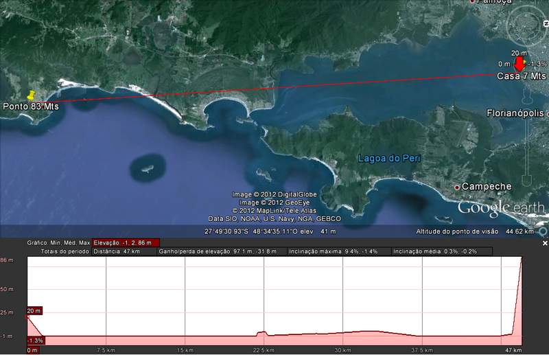 Ponto A (AP): -27.614642,-48.593185, Fica em uma casa, ~7m a antena, ~30m ao nivel do mar