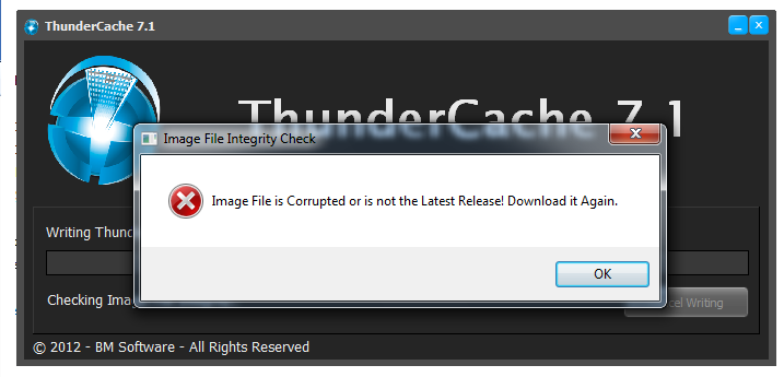 o thunder cache 7 meu não ta mando para gravar no cd fala que o arquivo de imagem do disco selecionado não é válido?