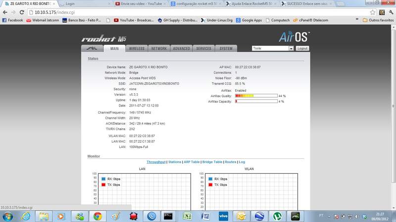 Galera estou tentando fazer um enlace com uma rocktm5 e uma antena de 90 da Maxgain