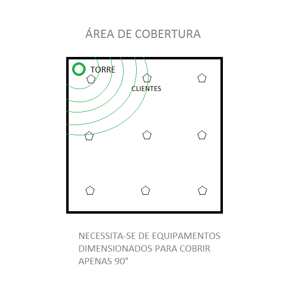Vou te dar outra dica: ao invés de construir a rede em um ponto centralizado de onde pretende atender, monta a torre em um "canto" da área de onde consiga enxergar toda a área de cobertura. Assim, com antenas de 90° tu consegue cobrir todo o espaço físico. Tanto em 2.4 como em 5.8Ghz.