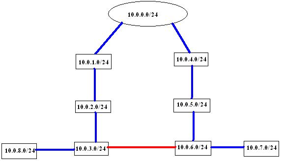 ...mas gostaria de saber se há possibilidade de implementar roteamento estático com essa redundância em anel? Para que se no caso do link entre 10.0.1.0/24 e 10.0.2.0/24 fique inativo, os demais após o 10.0.2.0/24 sejam atendidos pelo links em vermelho, como possuo o firewall no 10.0.0.0/24 consigo desviar as rotas para partirem a partir da 10.0.1.0/24 ou 10.0.4.0/24.
