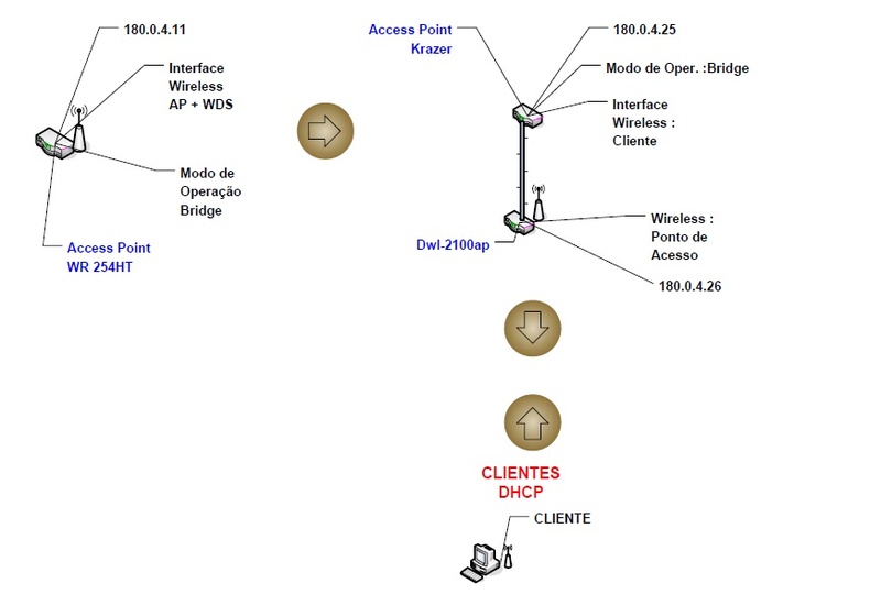 Ahh, lembrando que esse acess point modelo WR254ht é ligado diretamente no Switch e manda o sinal para o KRAZER através da wireless e o KRAZER manda o sinal atraves de uma cabo de rede para o DWL-2100Ap que por final distribui para os clientes...