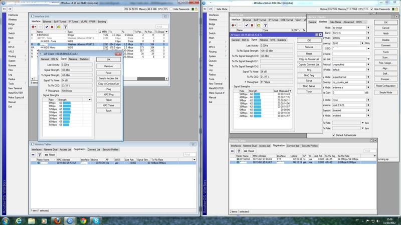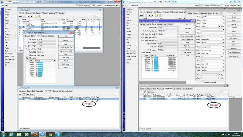 Boa tarde pessoal, tenho uma torre repetidora onde um ptp tem 40km e o outro tem 20km. Com o aumento do consumo de link, estava querendo mudar os ptp´s que uso hoje, no ptp de 40km uso XR5 com antena Hyperlink 33, no outro ptp de 20km uso XR5 com antena OIW 34, tudo numa rb 433ah.