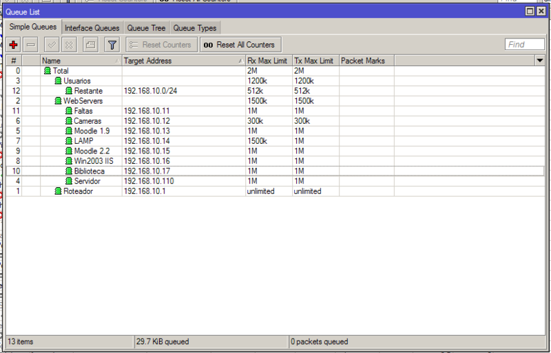 Simple queue HTB com parents e childrens (pais e filhos)