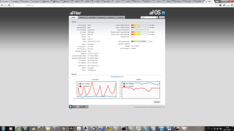 Fizemos o teste como um backup de enlace licenciado 2+0 de 800mbps, em alguns momentos direcionando tráfego real no airfiber, que suportou normalmente. Este enlace ainda repete sinal para outro 2+0 de 40km 800mbps atendendo a região de Campo Grande, Zona Oeste.