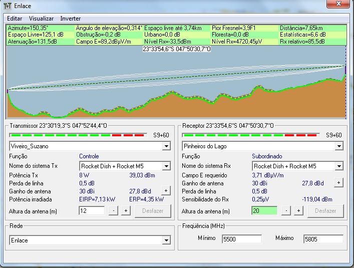 Sou novo aqui no fórum e iniciante na área de wireless. Preciso saber da opinião de vocês sobre este enlace, sobre a capacidade, distância e desempenho. Utilizei o Radio Mobile nesta simulação seguindo estas coordenadas de minha localidade: