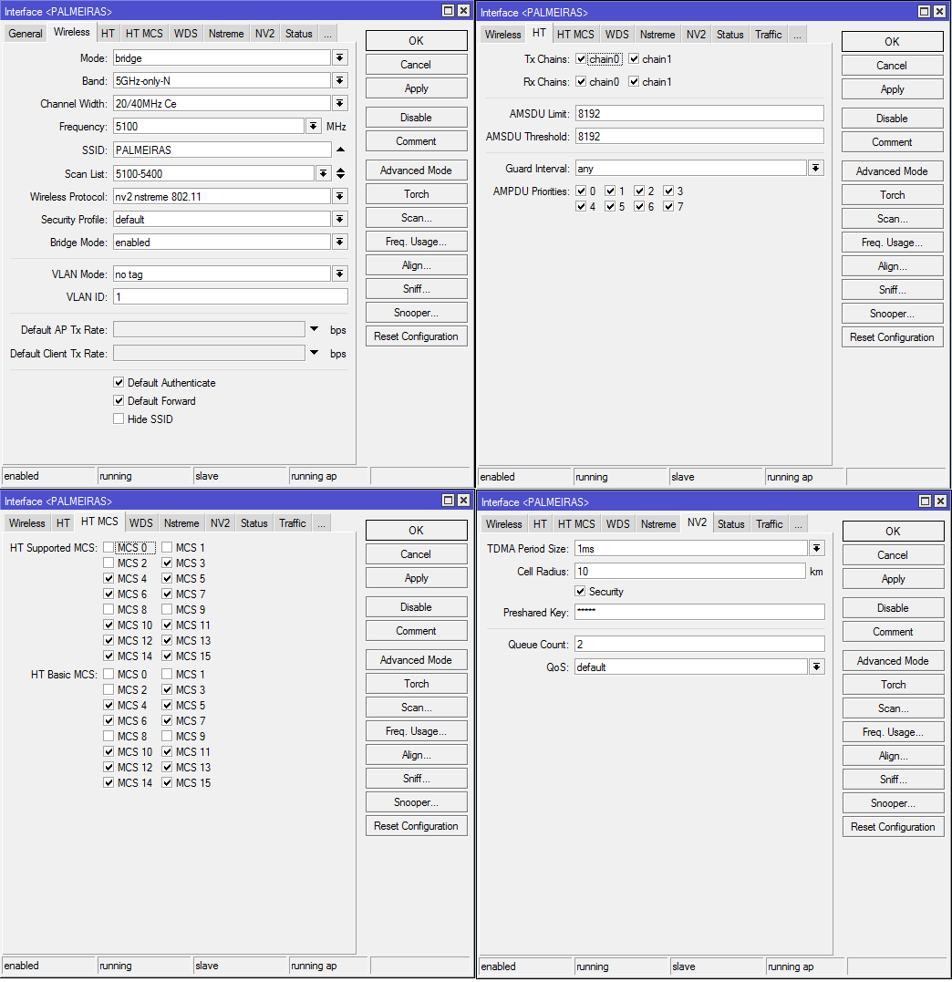 Os meus PTPs não desconectam mais, o ping baixou para 1 e 0, e no teste de banda usando tcp nas duas direções, o aumento foi considerável, passando agr 70 full...