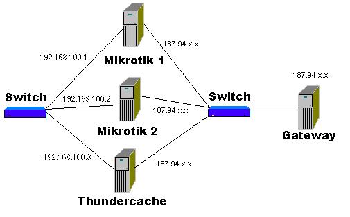 Sobre o que o Márcio disse também acho que ele não entendeu bem a topologia do colega. Parece que achou que todo o tráfego iria passar pelo Thunder, foi isso? Não sei, não entedi sobre o que quis dizer sobre processamento e falha no MK. Se entendi errado, desculpa :).