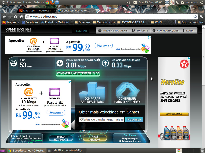atualmente esse é o resultado mas isso é de madrugada durante o dia nem o teste é concluido rs a navegação é um porcaria só de madrugada q tem esse resultado