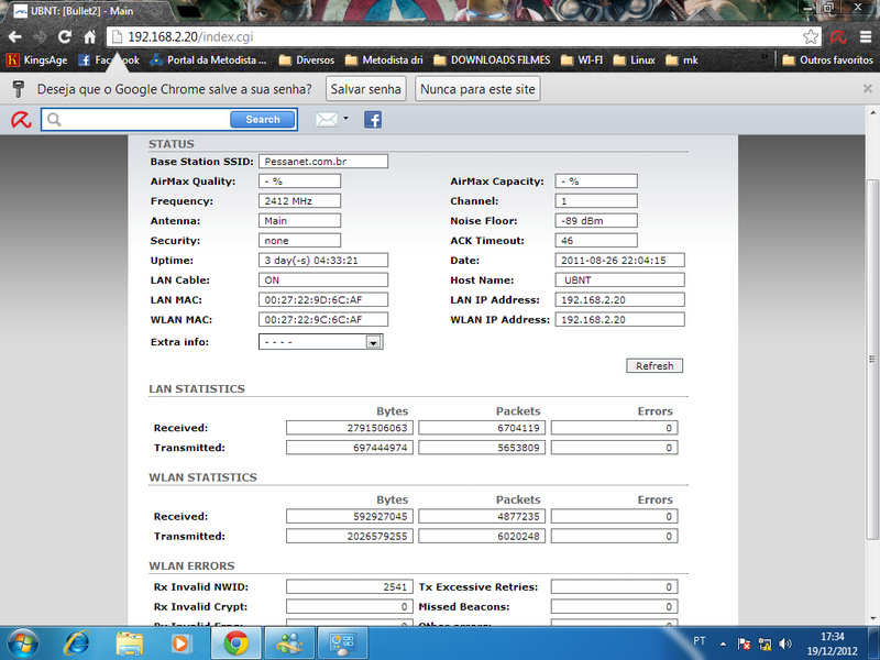 pessoal aki esta a configuração do bullet. coloquei tbm uma foto do consumo de banda no mikrotik durante a tarde quando eu nao conseguia navegar.