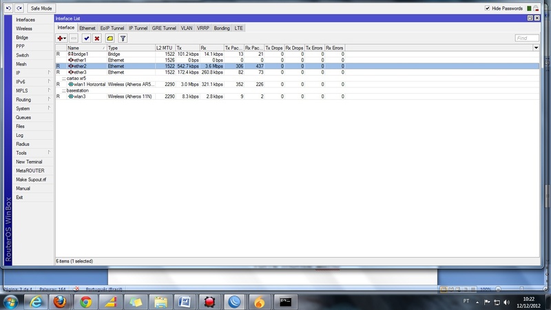 na imagem ai que vc postou certamente o a interface de entrada de link é a ether2, visto que tem uma bridge criada, penso que as interfaces que os clientes conecta estejam em bridge..ok