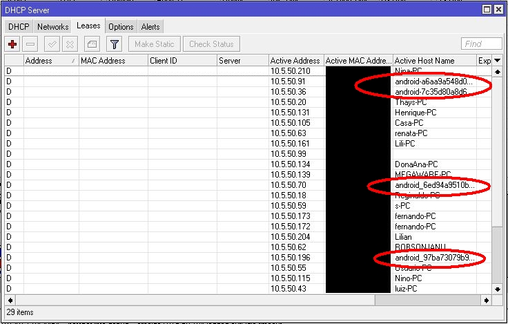 Algum tempo sempre olhava o "IP> DHCP SERVER> LEASES" e sempre tem celulares android conectado em minha rede, estando protegida ou não, quem tem o aplicativo Zona Gratis pode conectar-se facilmente na sua rede.