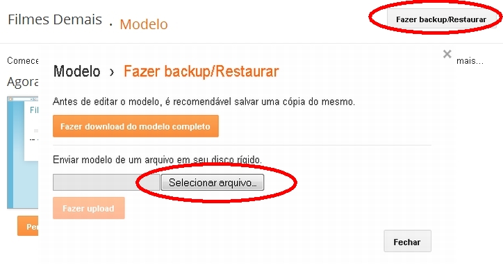 • E Depois Modelo • Clique em fazer backup/restaurar