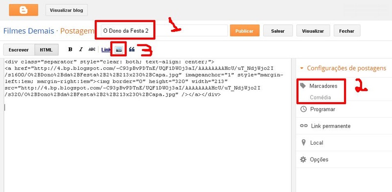 Baixe o Filmes Código 3.zip descompacte o texto e cole na postagem, não apague o link da imagem ainda, deixe-a como está.