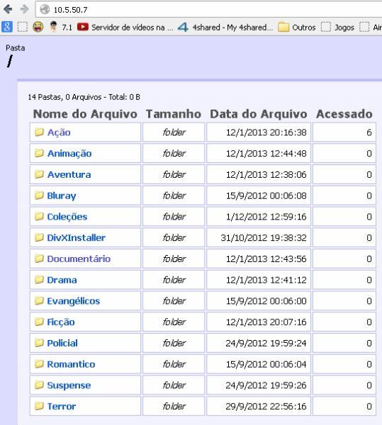 Agora que você adicionou as pastas de filmes você irá ver essas pastas tanto na interface do programa HFS como na página HFS, tudo deu certo agora vamos para a parte do blog.